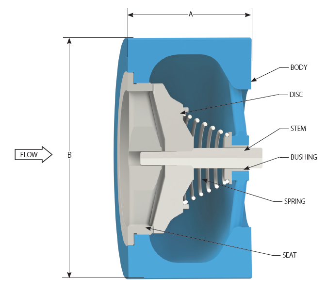 The DFT® Model WLC Cast Iron Wafer style Silent Check Valve is a spring-assisted, in-line check valve that provides reliable, low maintenance service for a wide range of fluids and pressure/temperature combinations. This check valve is cast iron and face-to-face according to MSS-SP126. The joint between the seat ring and body is sealed by the flange gasket upon installation preventing any leakage through the joint when the valve is in service.